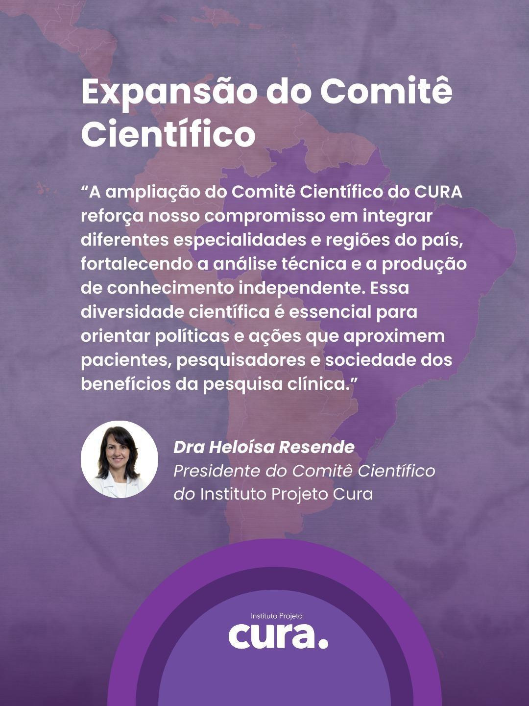 Para la presidenta del Comité Científico del Instituto del Proyecto Cura, Dra. Heloisa Resende: «La expansión del Comité Científico de CURA refuerza nuestro compromiso de integrar diferentes especialidades y regiones del país, fortaleciendo el análisis técnico y la producción de conocimiento independiente. Esta diversidad científica es esencial para guiar las políticas y acciones que acerquen a los pacientes, los investigadores y la sociedad a los beneficios de la investigación clínica»